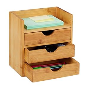 Relaxdays Schreibtisch Organizer, Ablage, 3 Schubladen, für Büroutensilien, Bambus Schubladenbox, HBT: 21x20x13 cm Natur